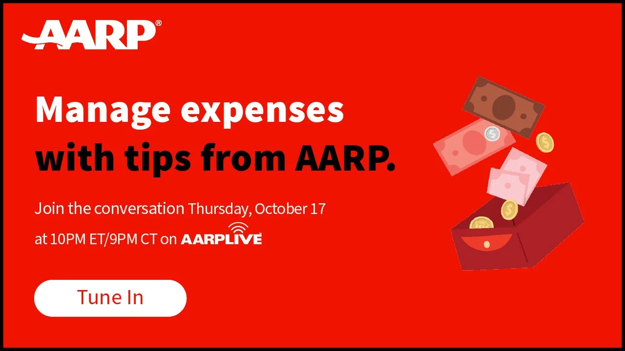 From medical bills to utilities, navigating day-to-day expenses can be challenging. Discover resources to help manage your expenses with tips from AARP. Join the conversation Thursday, October 17 at 10 PM ET/9 PM CT on RFD-TV or watch on the web at aarp.org/aarplive.